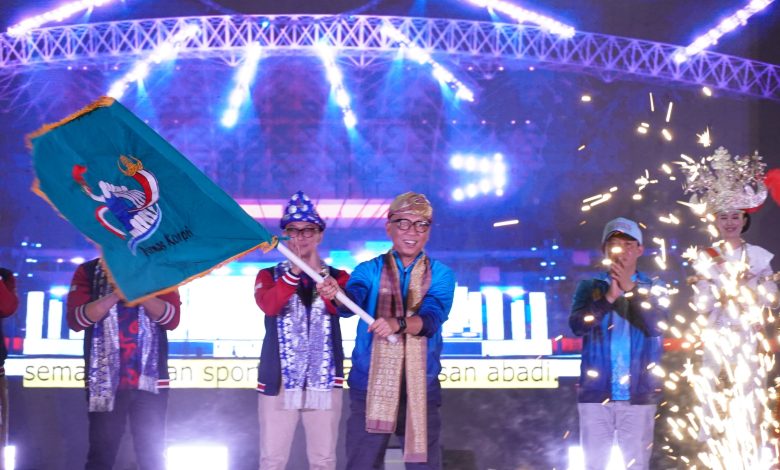 PALEMBANG –Surya bangkit com— Provinsi Lampung resmi ditunjuk menjadi tuan rumah Pekan Olahraga Nasional (Pornas) Korpri XVIII Tahun 2027. Penetapan ini ditandai dengan penyerahan pataka atau bendera estafet dari Gubernur Sumatera Selatan, Herman Deru, kepada Gubernur Lampung Rahmat Mirzani Djausal dalam upacara penutupan Pornas Korpri XVII di Palembang, Sabtu (11/10/2025).