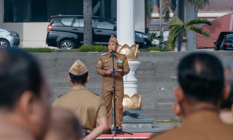 Bandar Lampung – Surya bangkit com–Gubernur Lampung yang diwakili Staf Ahli bidang Pemerintahan, Hukum dan Politik, Achmad Saefulloh memimpin apel mingguan di lingkungan Sekretariat Daerah Provinsi Lampung, di Lapangan Korpri, Senin (13/10/2025).