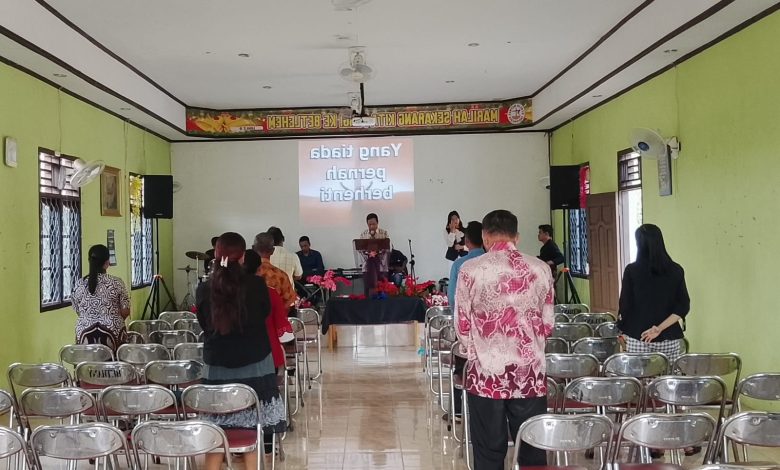 Polsek Lambu Kibang Laksanakan Pengamanan Ibadah Gereja Minggu Kasih Gereja Bethel Indonesia Tiyuh Kibang Budi Jaya