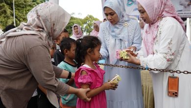 Diguyur Hujan, Aksi Berbagi Takjil TP. PKK dan DWP Provinsi Lampung Tetap Disambut Antusias Warga